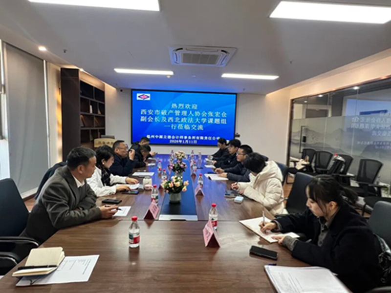 2026年1月11日下午,“破产管理人向担保权人收取报酬的实践困境和因应对策” 横向课题调研组一行莅临温州中源立德会计师事务所,开展阶段性研究成果交流研讨。西安市破产管理人协会副会长张宏仓,课题负责人、西北政法大学民商法学院教授党海娟,以及课题组成员茹张峰、刘静文、许诺贝三位同学参与本次交流。